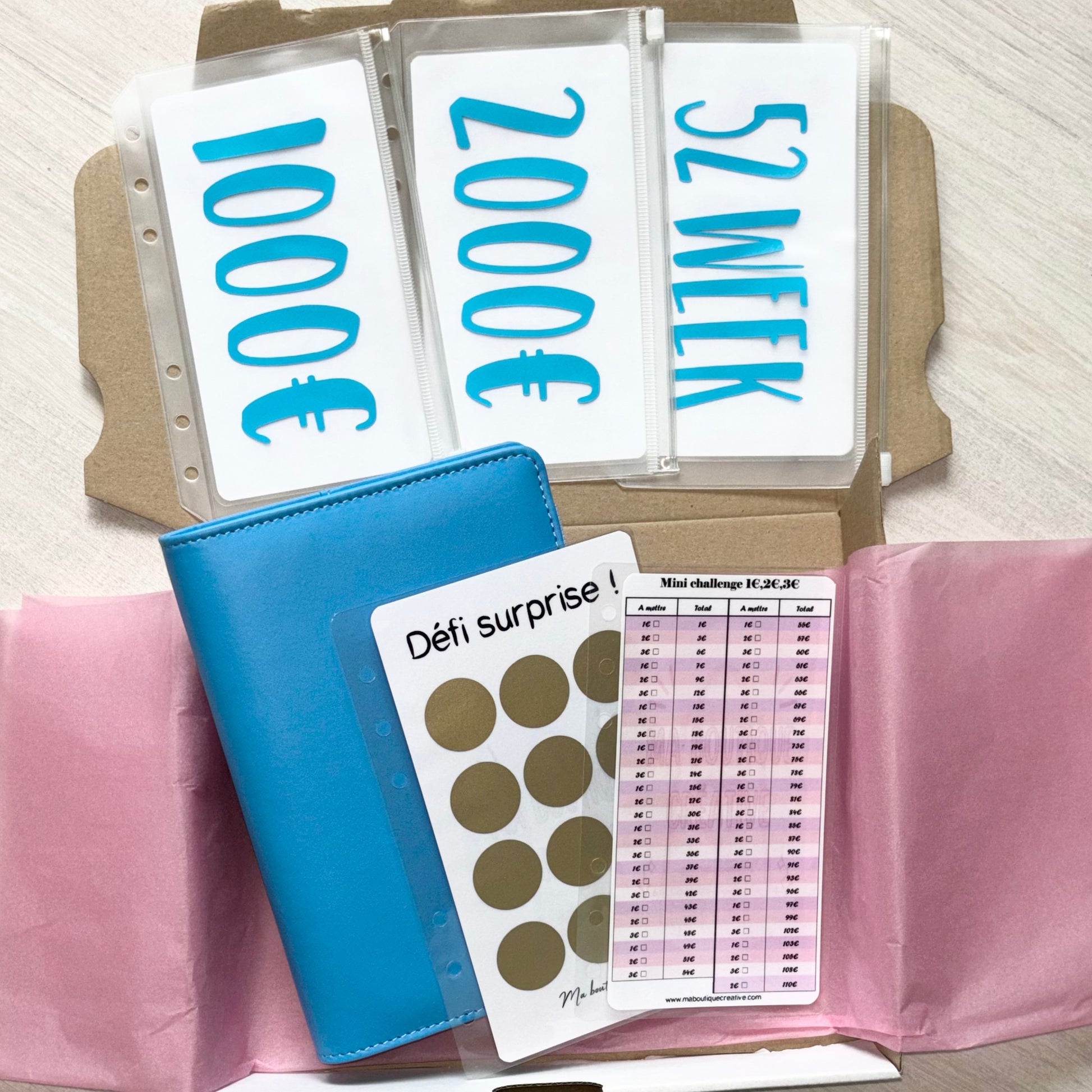 - Un kit challenge 100 enveloppes spécial petit budget 1000€ (1 enveloppe + 1 tracker du défi)