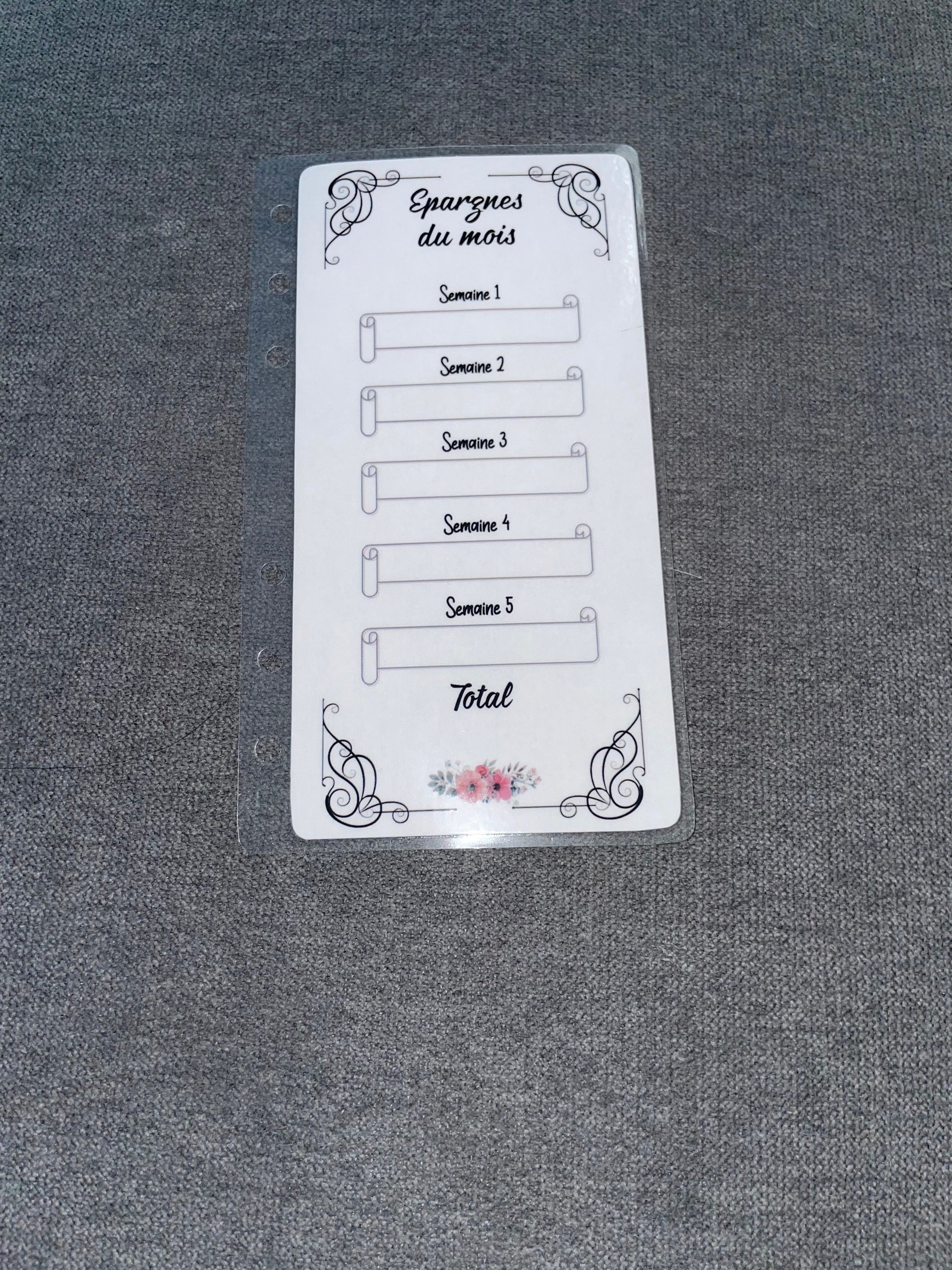 1 Tracker épargnes du mois par semaines ET/OU catégories personnalisable format A6