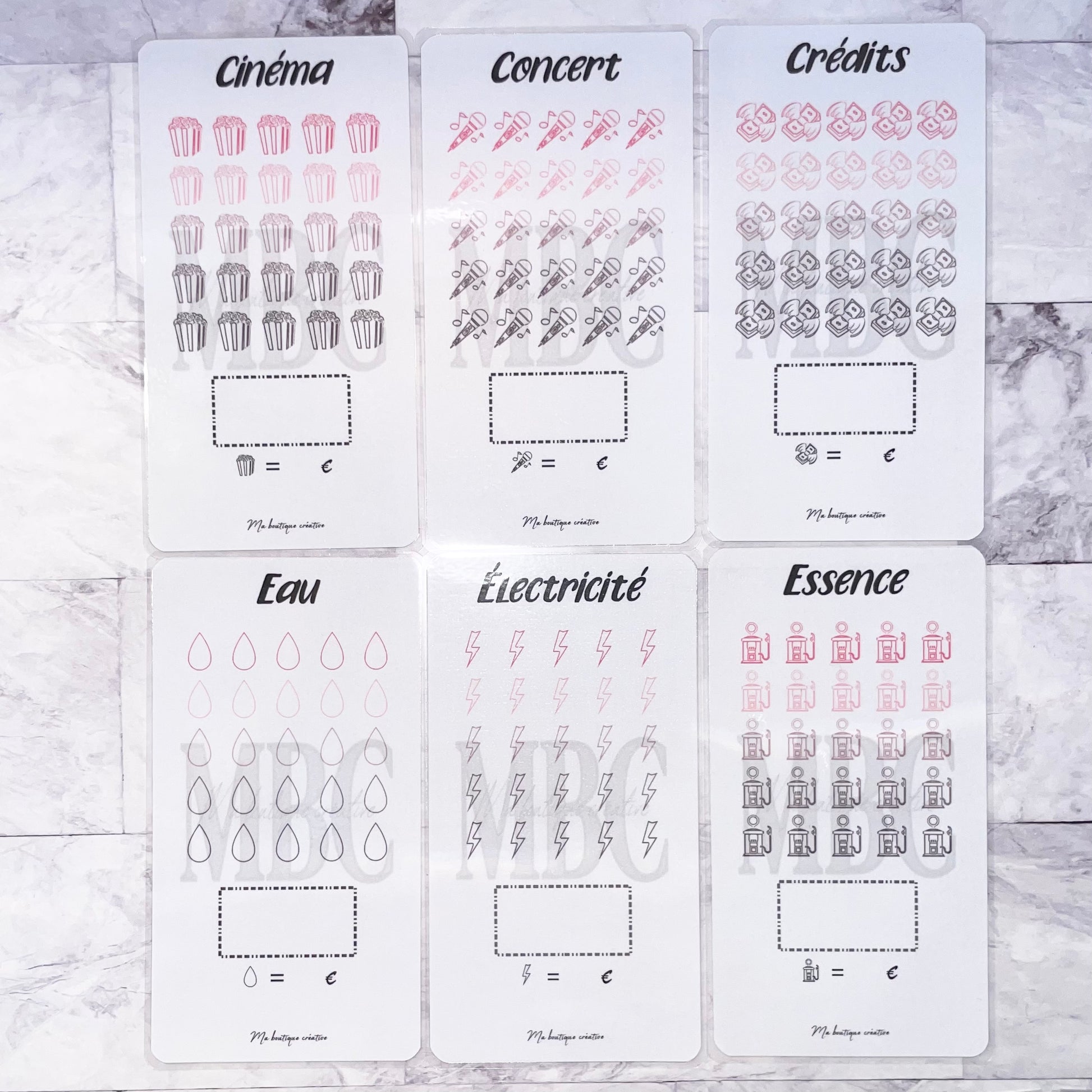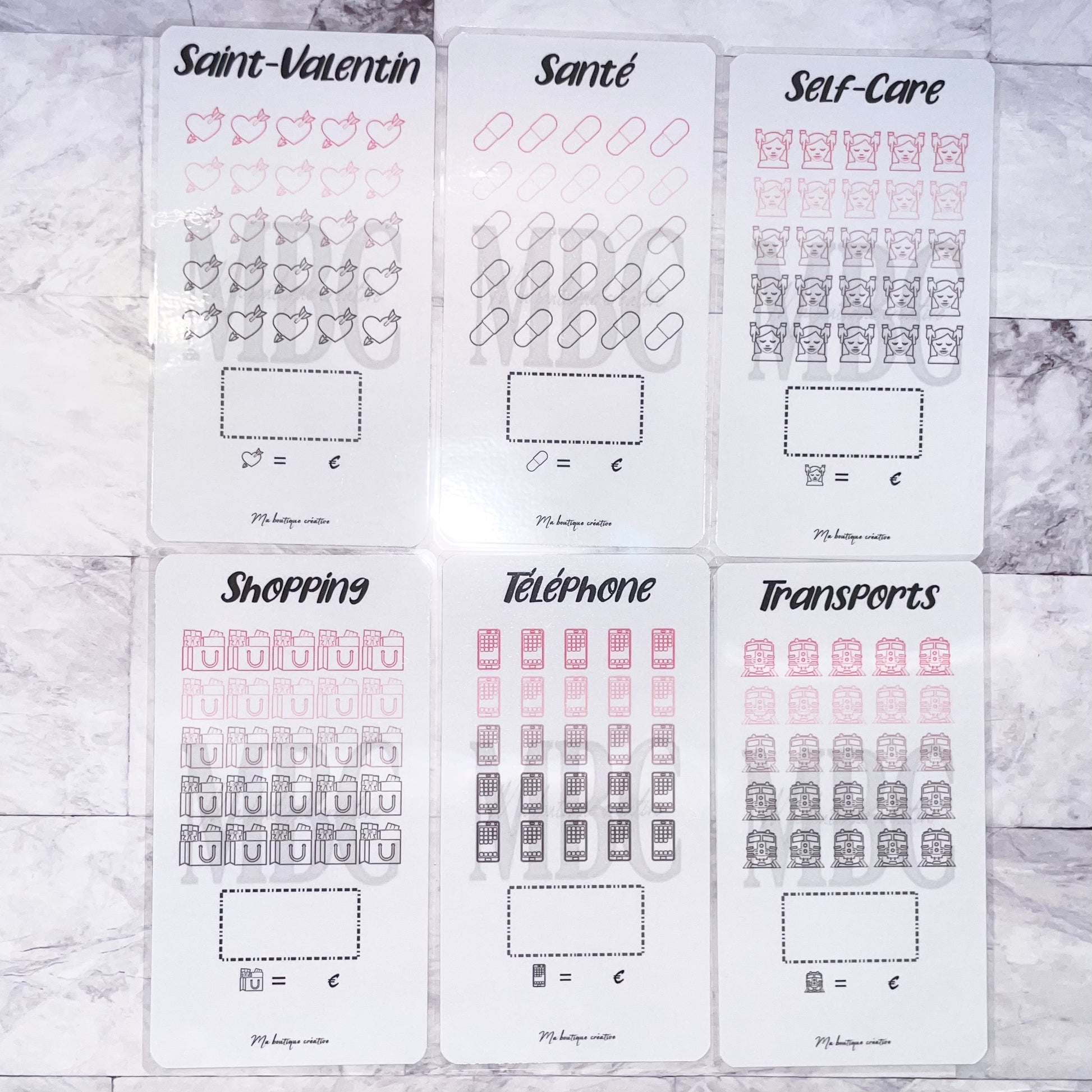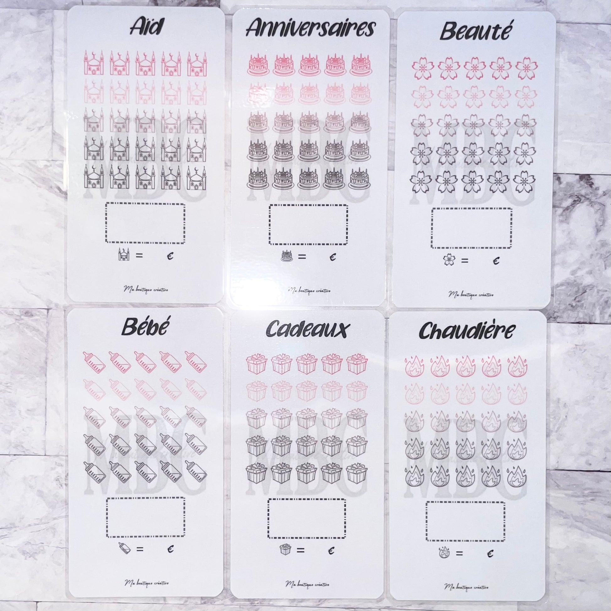 Vous trouverez ici pleins de différents trackers au format A6 pour vos épargnes avec 25 cases dont vous disposerez du choix du montant ! Vous avez également la possibilité (ou non) de prendre le tracker avec une enveloppe zip qui va avec !